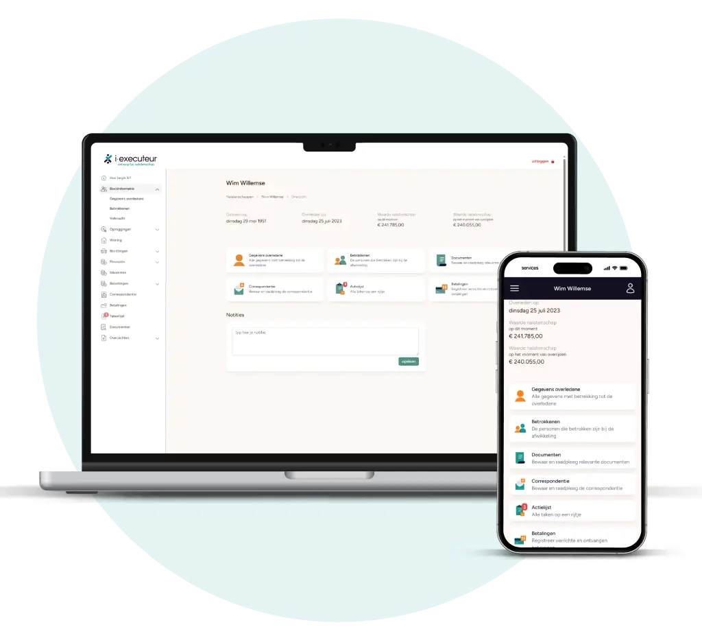 Onze grondlegger Max Leffring, zelf al jarenlang professioneel executeur, begon ooit met het automatiseren van zijn eigen werkwijze. Met honderden afgewikkelde nalatenschappen aan ervaring, weet hij exact waar je overal aan moet denken bij het afwikkelen van een nalatenschap. Die praktijkervaring is de basis van de i-executeur software. Elk onderdeel van de software is ontworpen vanuit de behoeften van de professional. Geen overbodige functionaliteiten of ingewikkelde systemen, maar precies datgene wat nodig is om overzicht te houden, fouten te voorkomen en helder te communiceren met alle betrokkenen.